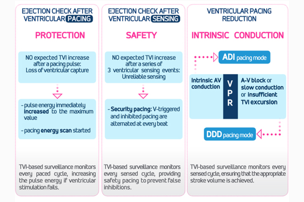 – Confirms the ejection at every beat and assesses the stability of ventricular mechanics in tachycardia.
